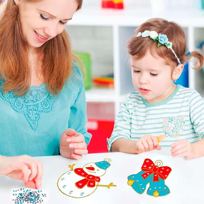 | W opakowaniu: | 6x motyw, 6x tubka farby (różne kolory), 6x łańcuszek do wisiorka, 1x pęseta, 1x paczka diamentów, 1x paczka kolorowych koralików, 1x dłuższy sznurek |