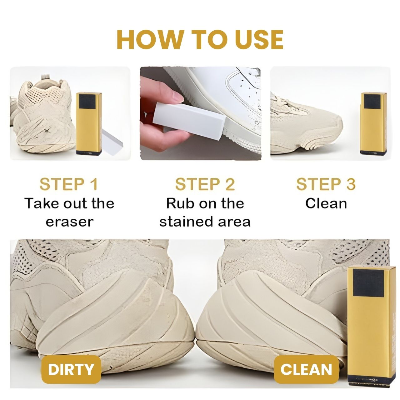 Wystarczy kilka kroków, aby na butach zgromadził się kurz, brud i uporczywe plamy. Gumka oferuje szybkie i łatwe rozwiązanie. Kilka pociągnięć wystarczy, aby wyczyścić buty bez ich uszkadzania. Nie potrzebujesz wody ani detergentów - wystarczy gumka, a twoje buty będą zauważalnie czystsze.