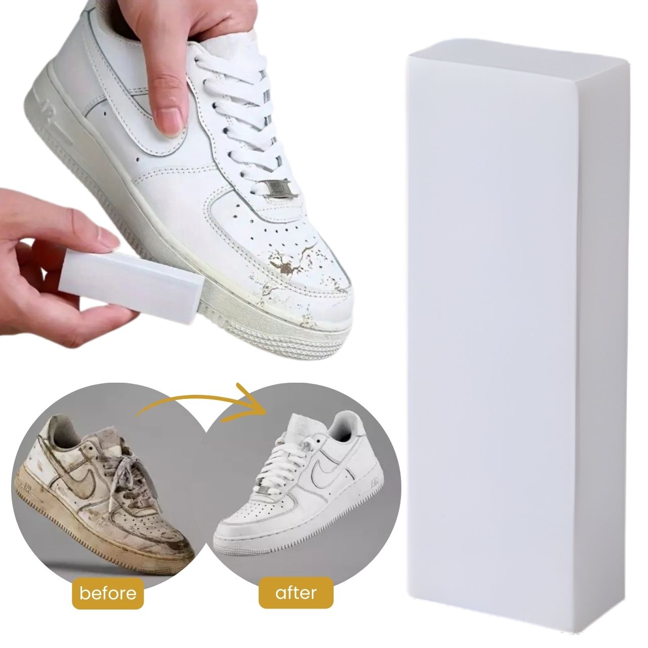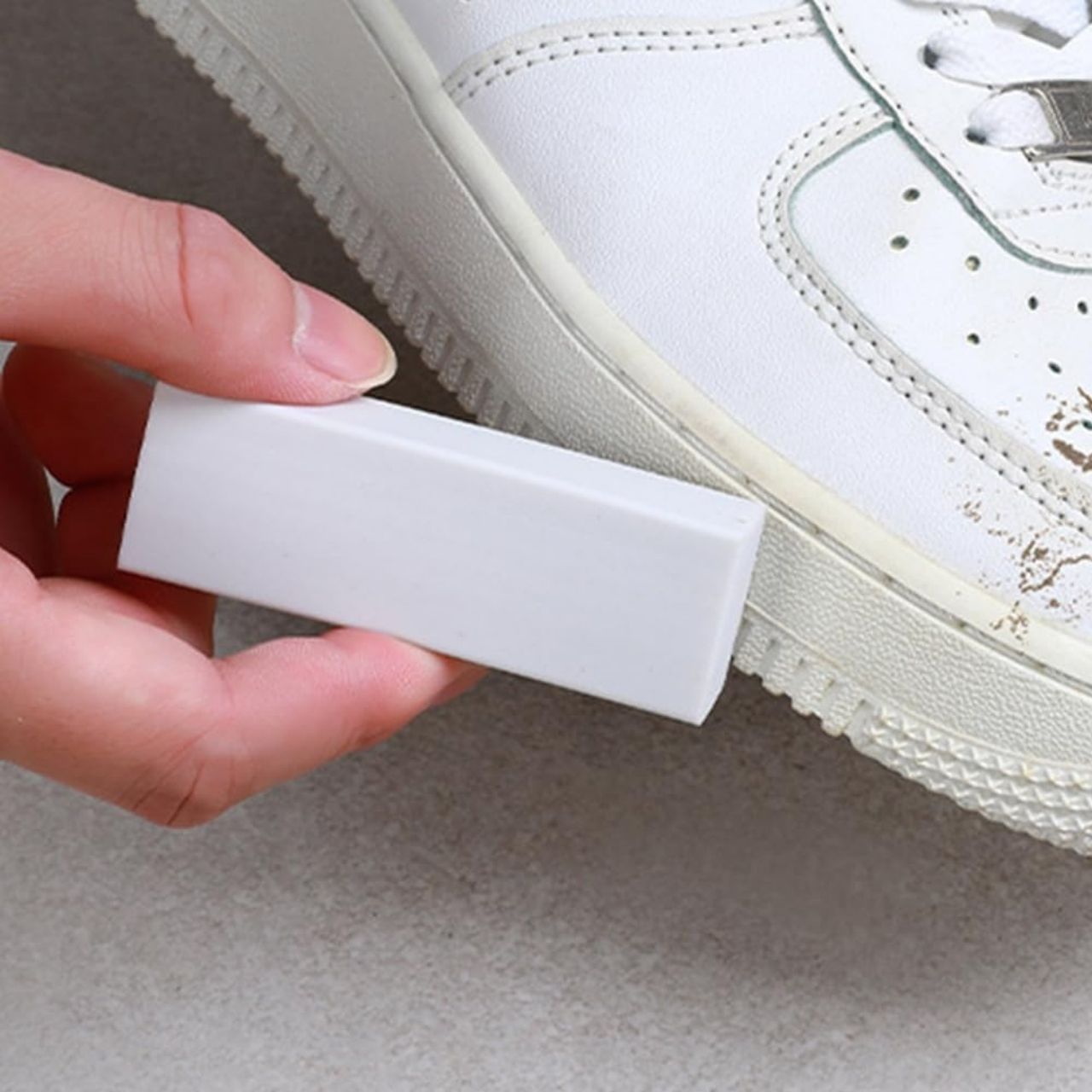 Białe trampki i jasne obuwie wymagają szczególnej pielęgnacji. Gumka skutecznie usuwa plamy, nie uszkadzając powierzchni ani nie pozostawiając śladów. Nadaje się do codziennej pielęgnacji obuwia, nawet tuż przed wyjściem z domu.