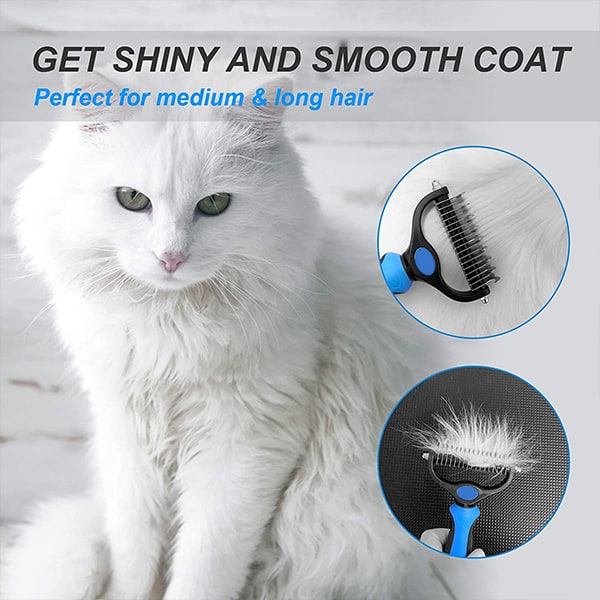 Dwustronna szczotka do usuwania podszerstka i rozczesywania włosów jest odpowiednia dla wszystkich futrzastych przyjaciół o średnich i długich włosach! Jest to produkt szczególnie niezbędny w okresie linienia zwierząt.