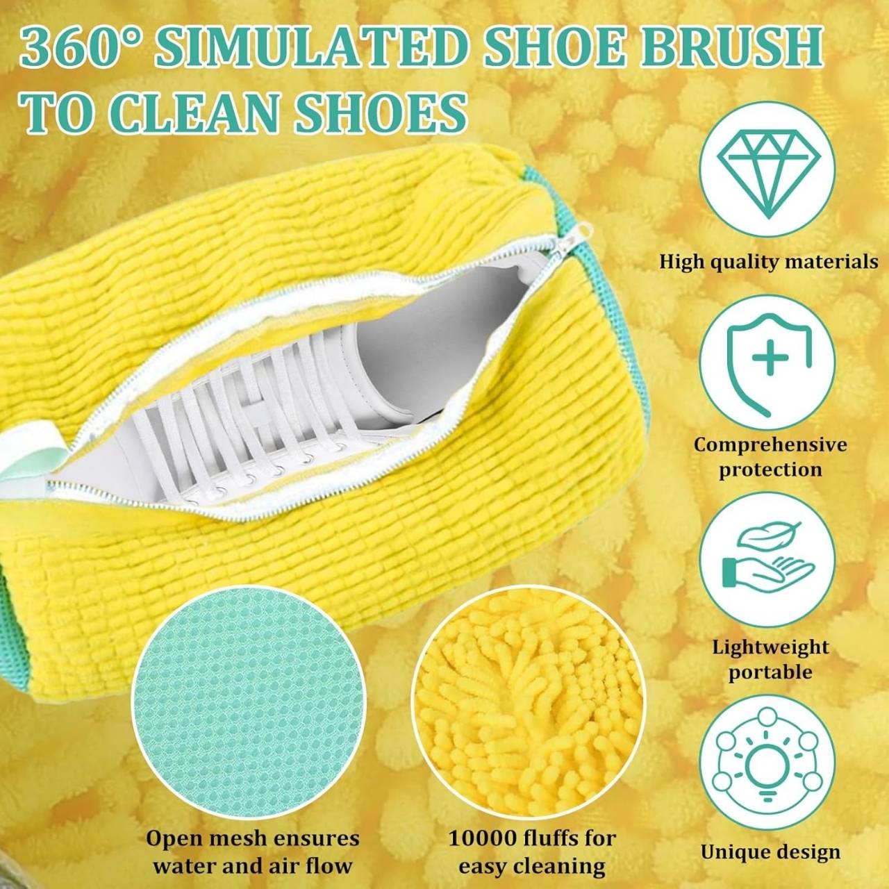 Torba ma specjalne miękkie włosie wewnątrz, które w połączeniu ze środkiem czyszczącym skutecznie usuwa nawet najbardziej uporczywe plamy z butów. Delikatnie szorują powierzchnię podczas prania i zapewniają głębokie czyszczenie bez uszkadzania materiału.
