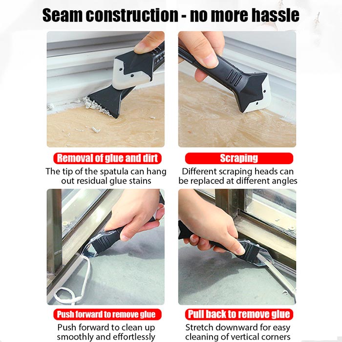 Wielofunkcyjne urządzenie SiliconRemover bardzo dobrze sprawdza się podczas nakładania, wygładzania i usuwania mas silikonowych w łazience, kuchni, zlewie itp. W zestawie otrzymasz nasadki o pięciu różnych kształtach, dla różnych kątów i głębokości spoin. Nasadki wykonane są ze specjalnego materiału, do którego nie przykleja się silikon.