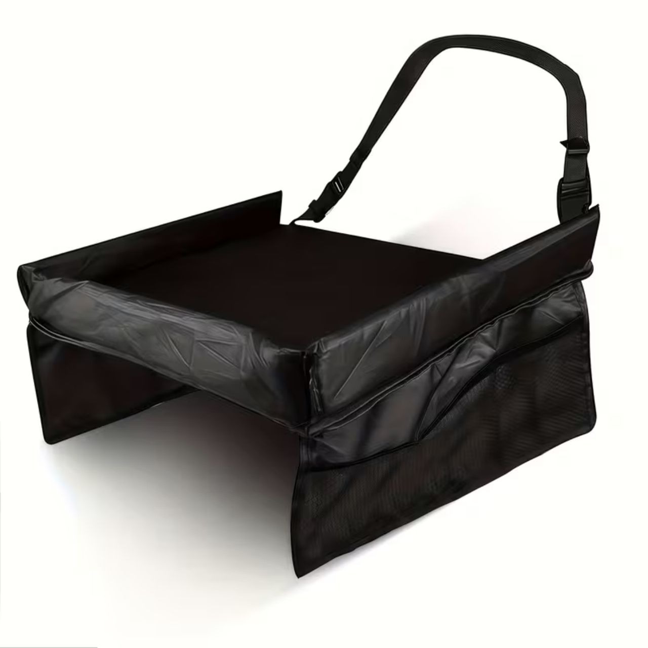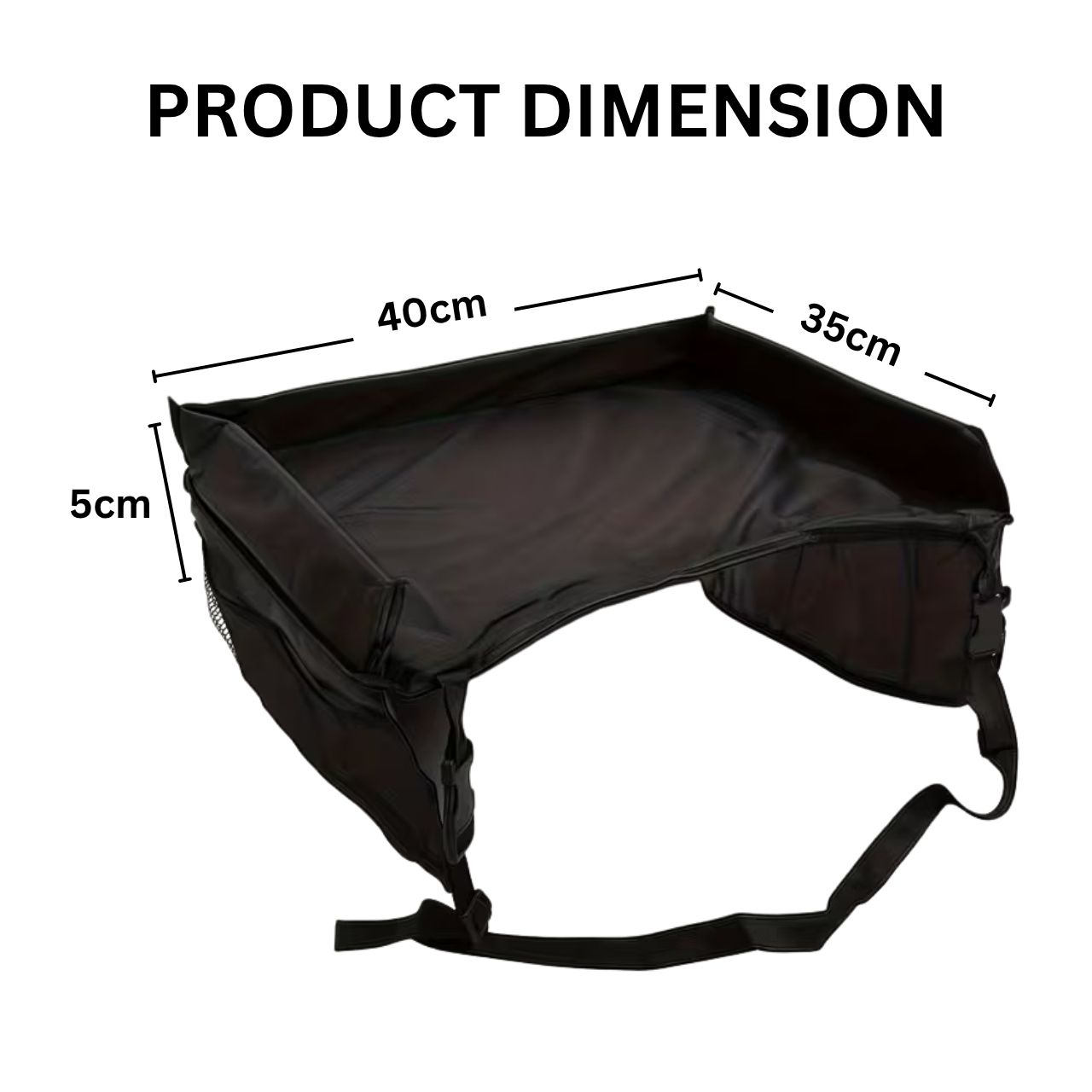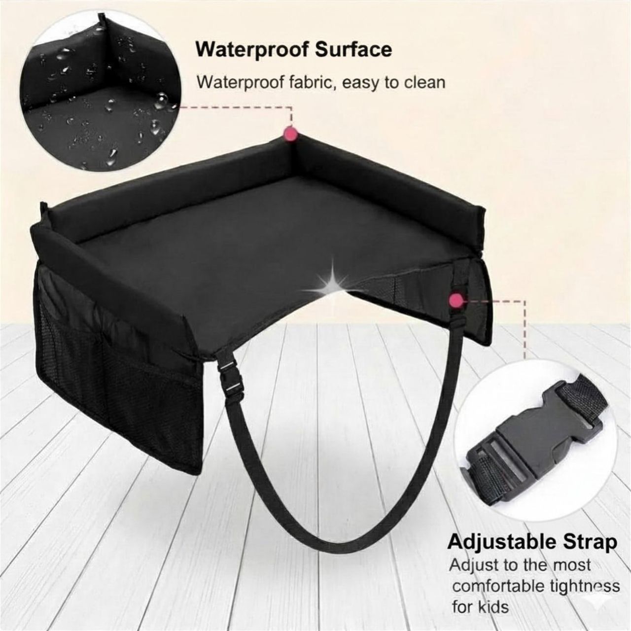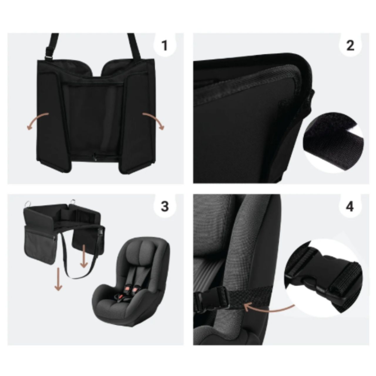 Podróżne biurko ma regulowane paski z klamrami. Wystarczy umieścić pasek wokół siedzenia i zapiąć go bezpieczną klamrą. Możesz również dostosować długość paska.