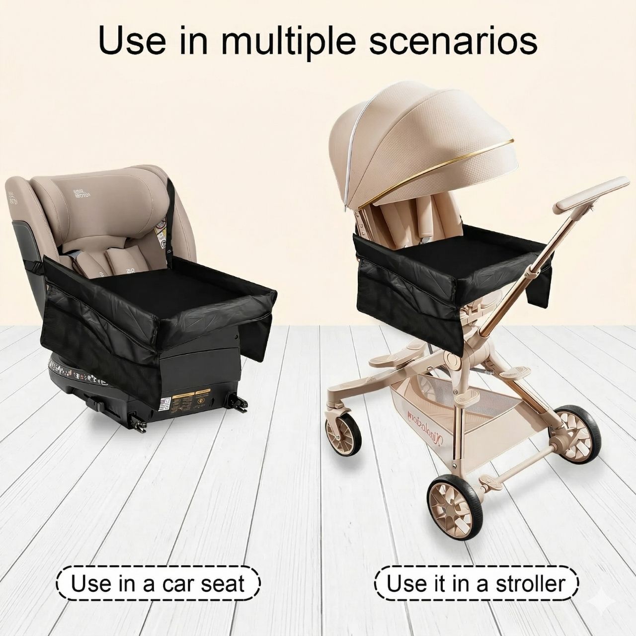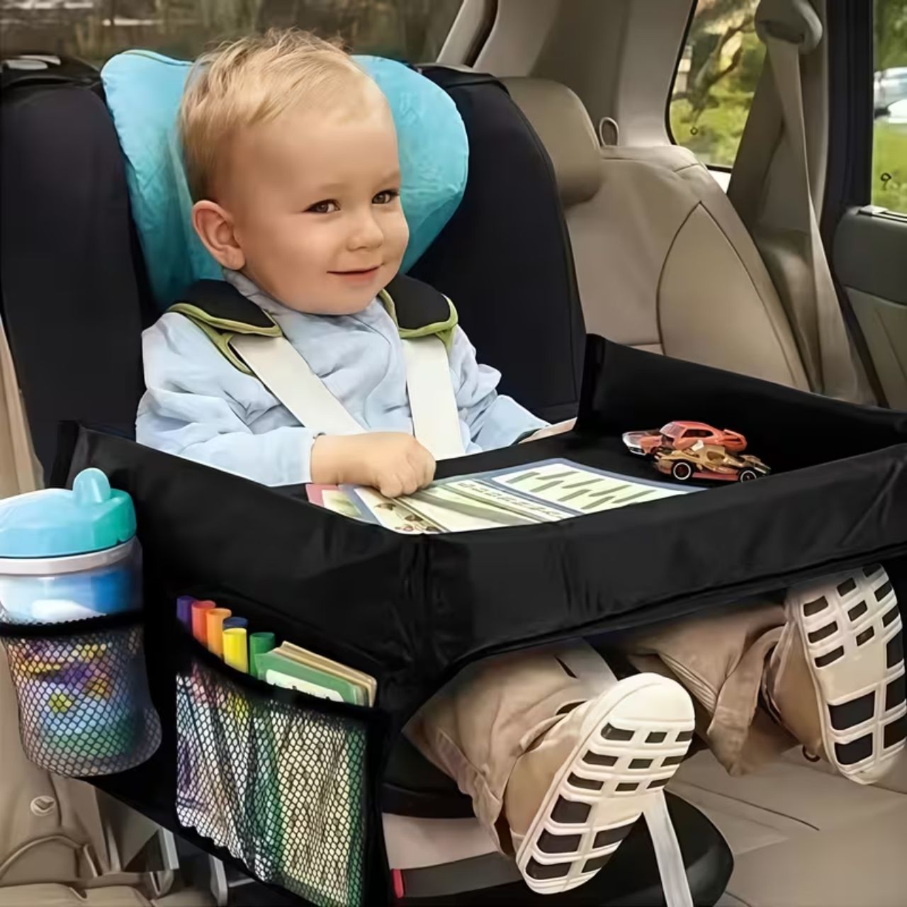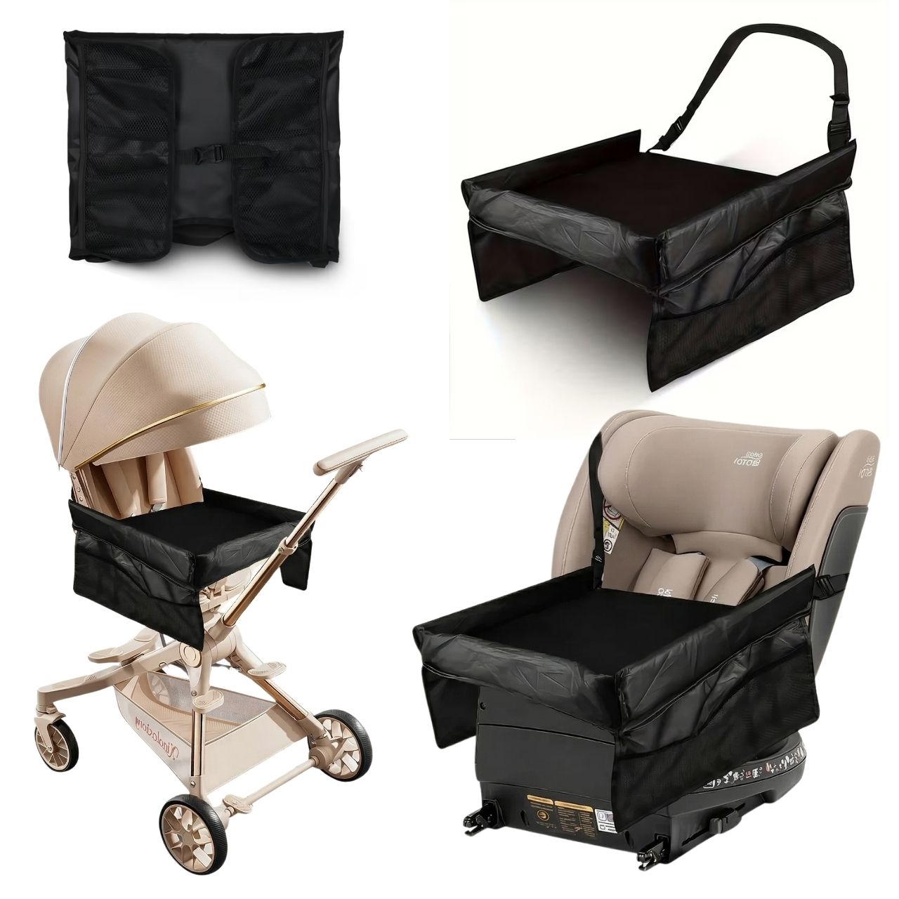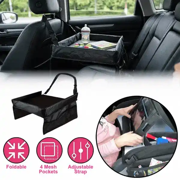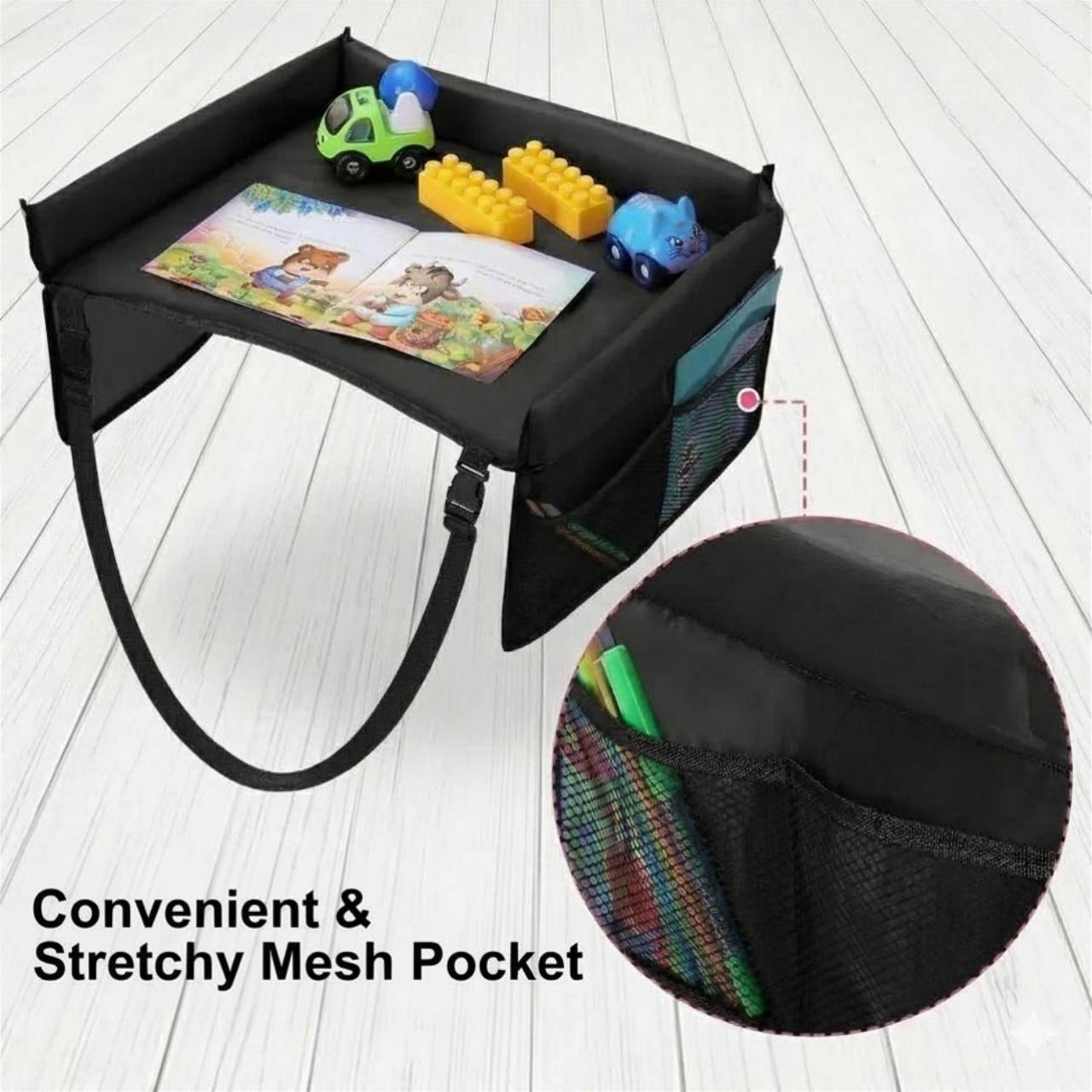 Podróżne biurko ma regulowane paski z klamrami. Wystarczy umieścić pasek wokół siedzenia i zapiąć go bezpieczną klamrą. Możesz również dostosować długość paska.