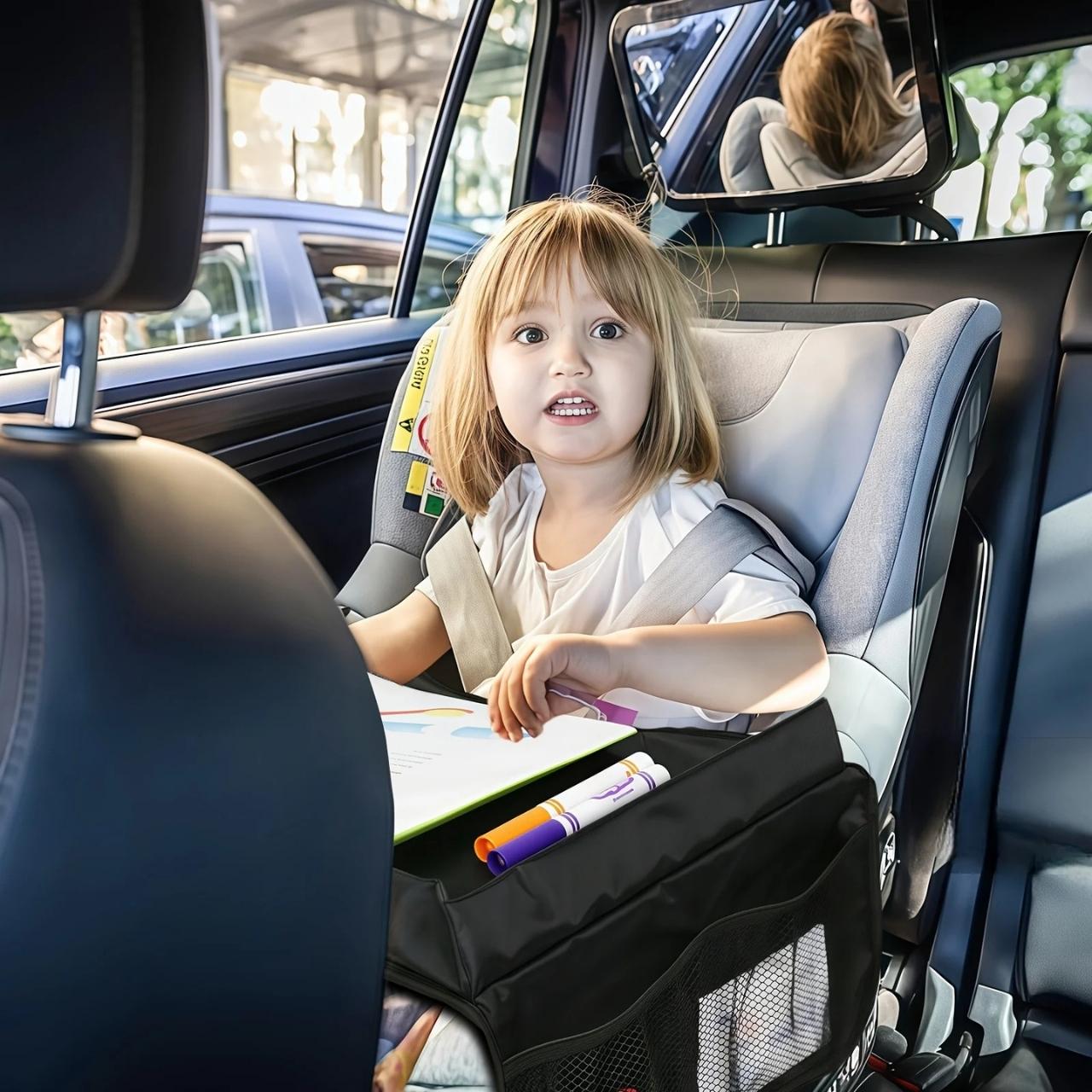 Podróżne biurko ma kilka przegródek, gdzie dzieci mogą umieścić swoje przybory do pisania (kredki, kredki świecowe, markery itp.) oraz inne akcesoria (butelka, notatnik, mała zabawka itp.)!